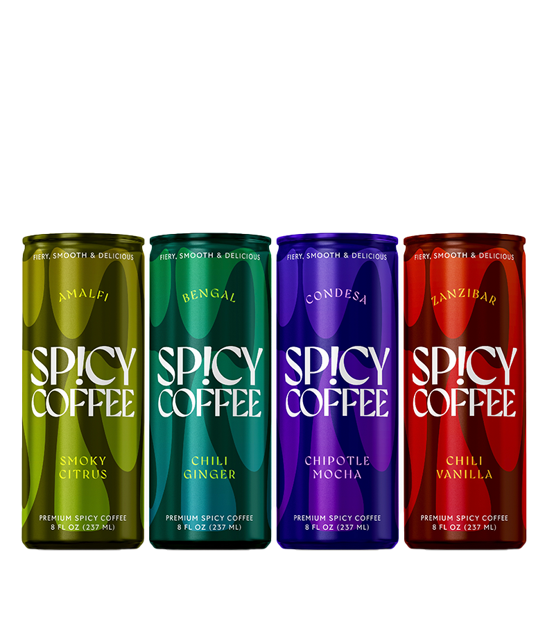 Our adventure begins with four varieties inspired by diverse global regions. Each crafted to reflect the fiery essence of its origin and united by premium coffee, whole milk, real sugar, and a kick of chili or other peppers to compliment the caffeine.