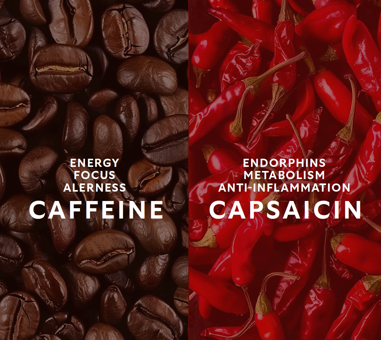 Spices like chili and cinnamon enhance the energizing effects of caffeine. The natural heat from chili helps kickstart your metabolism, increasing blood flow and promoting focus. Combined with caffeine, this creates a powerful boost that sharpens both mind and body.